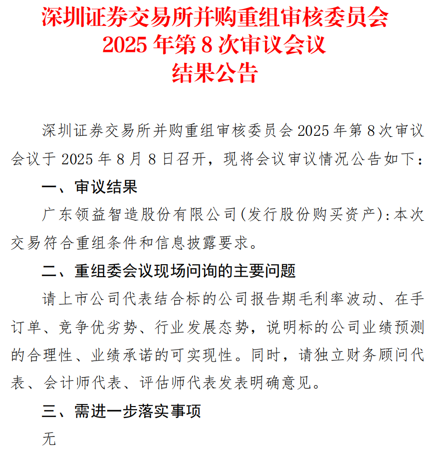 6月6日,领益智造重大资产重组获深交所受理,经过重组问询后,领益智造重大资产重组项目8月8日上会并顺利过会。